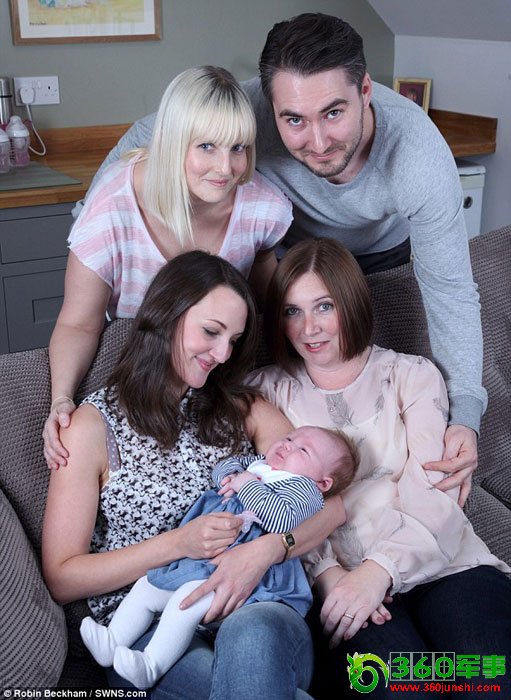 【环球网报道】英国女子凯蒂·斯莱德患有罕见的遗传疾病,这意味着她和丈夫戴维也许永远不能怀上宝宝。但是,为了实现自己当妈妈的梦想,凯蒂借用了自己妹妹露西的卵子。与此同时,戴维的姐姐身兼代孕妈妈。现在,凯蒂的女儿已经顺利出生,而且拥有了三个妈妈。