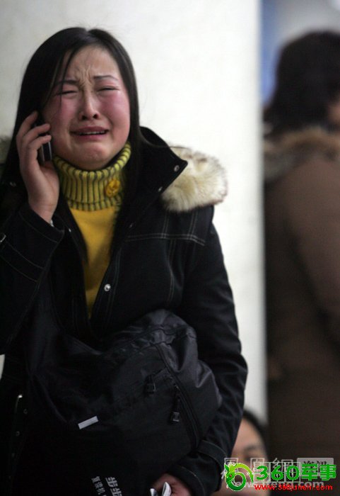 2006年1月,年关临近,北京西站春运大潮汹涌。由于南方大雪,近10万人滞留。图为一名在西客站候车的女孩焦急大哭。