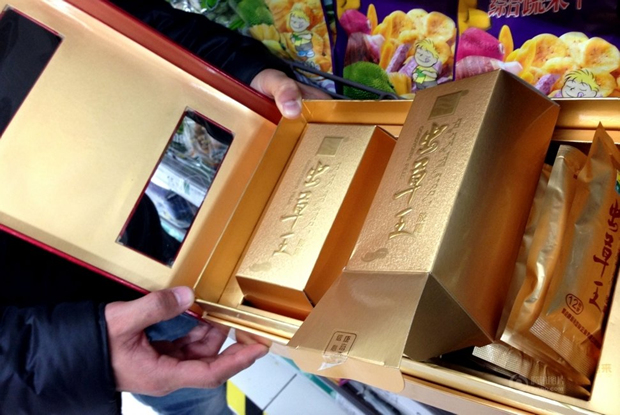 消费者在上海一家超市购买的虫草胶囊,里里外外共有4层包装(2月21日摄)。