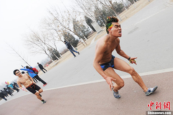 北京民众不惧重度污染参加“光猪跑”(1)(4)