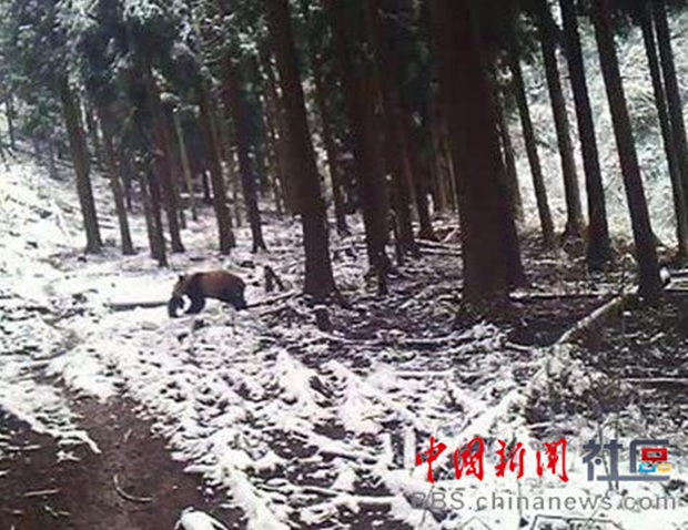 四川雅安市宝兴县林业局放出消息,春节期间,一只野生大熊猫造访宝兴县灵关镇建联村,并“偷吃”了村民芶必华家喂养的小羊羔。