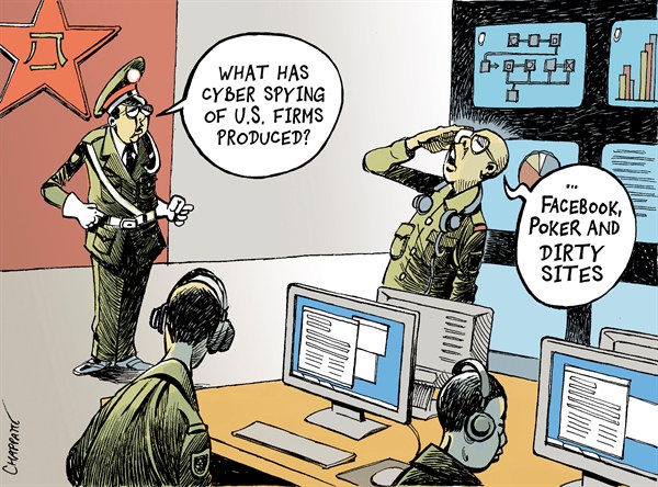 不得不佩服美国人的幽默,这组漫画思维跳跃性比较强,但反映的是美国人心中对中国威胁的恐惧。
