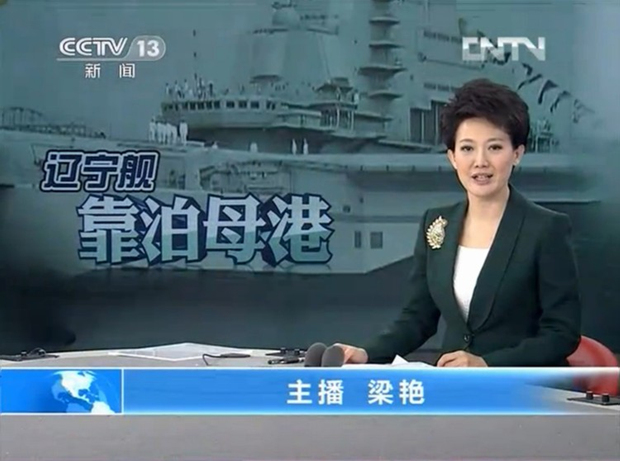 央视新闻节目中对辽宁舰靠泊青岛母港的报道