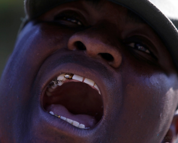 一名服刑人员在晨练中大呼小叫。