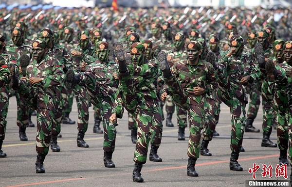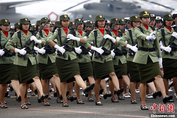 高清:印尼阅兵式女兵方阵神采奕奕(1)