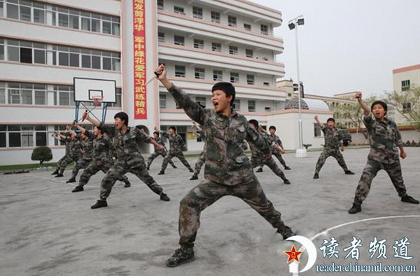 尖刀刺敌,如此这般生猛的女兵怎能不慑人心魂前些时候,驻香港部队筹建我军陆军部队首支女子特战分队。听说了这个消息后,郭娅君第一个向连队党支部提交了申请书,经过组织挑选后成为一名光荣的女子特战队员。猎人战斗、捕俘拳、匕首刺、武术基本功……她们的训练项目比男兵都要多,强度比男兵都要大。