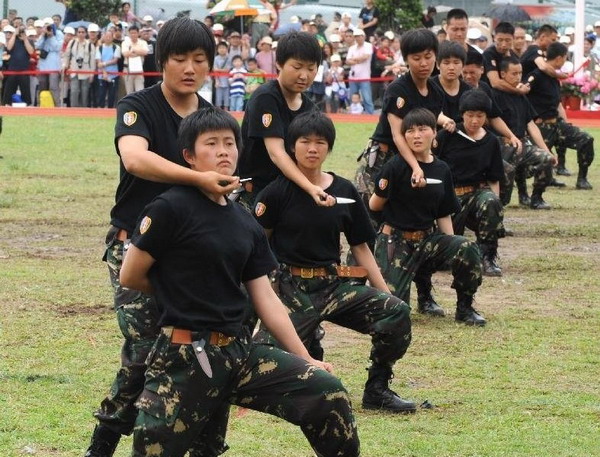 驻港部队军营开放日 女兵表演练割喉(1)(2)