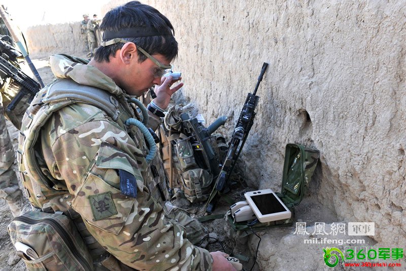 驻阿富汗英军士兵使用“黑色大黄蜂”微型无人机的遥控台。
